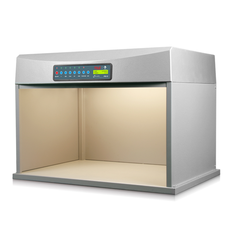 在生产实际中,多数是在光源的照射下工作,而每种光源均带有一定颜色。这就给正确判断原稿或产品颜色带来一定困难,色光下观色,色彩变化一般是相同色变浅,补色变暗,例如:红光下观色,红变浅,黄变橙,绿变暗,青变暗,白变红。绿光下观色,绿变浅,青变浅,黄变绿黄,红变黑,白变绿.黄光下观色,黄变浅,品红变红,青变绿,蓝变黑,白变黄。蓝光下观色,蓝变浅,青变浅,绿变暗,黄变黑,白变蓝.在印刷车间,一般都选择色温较高(3500~4100K),显色系数较好的日光灯作为看样光源,但要注意日光灯略偏蓝紫色。所以工业生产商拥有一款可以提供标准光源的标准光源箱是非常重要的。