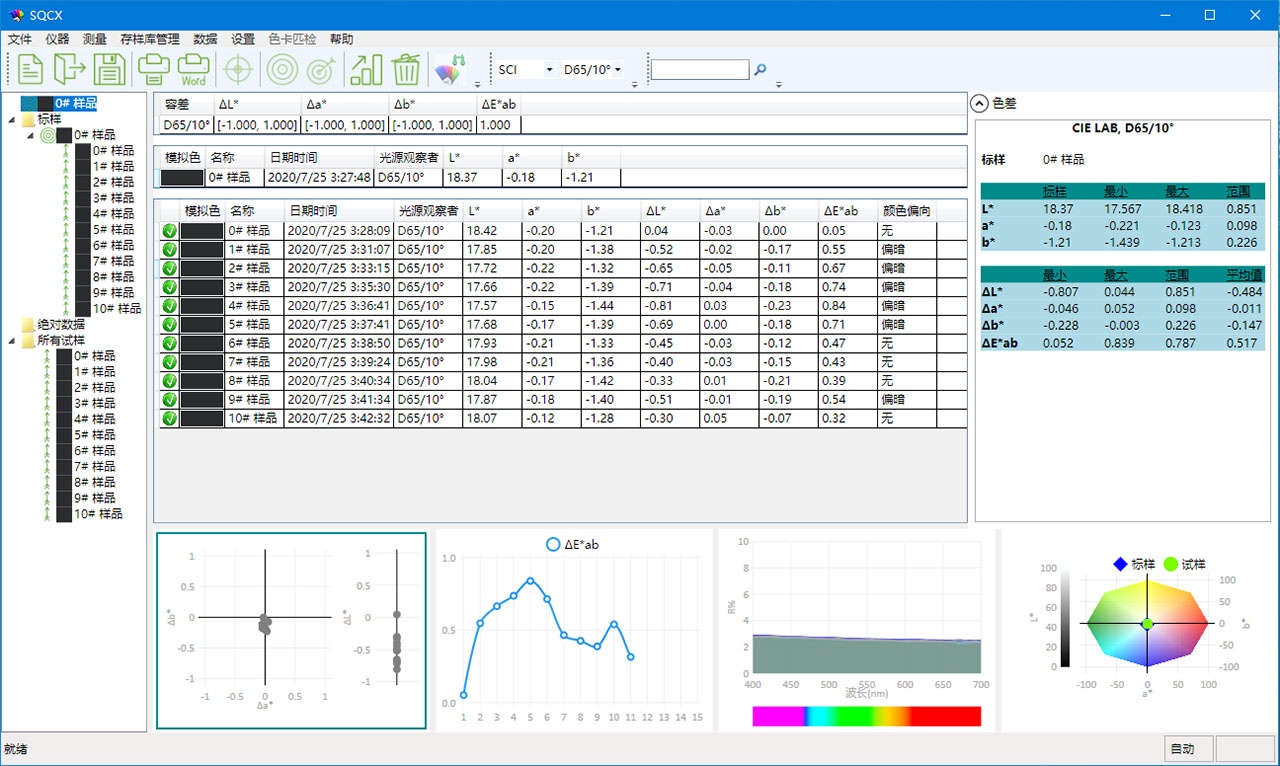 TS7030分光色差仪搭配的SQCX品质管理软件,适用于各个行业的品质监控和颜色数据管理。将用户的颜色管理数据化,比较颜色差别,生成测试报告,提供多种色空间测量数据,定制化客户的颜色管理工作。